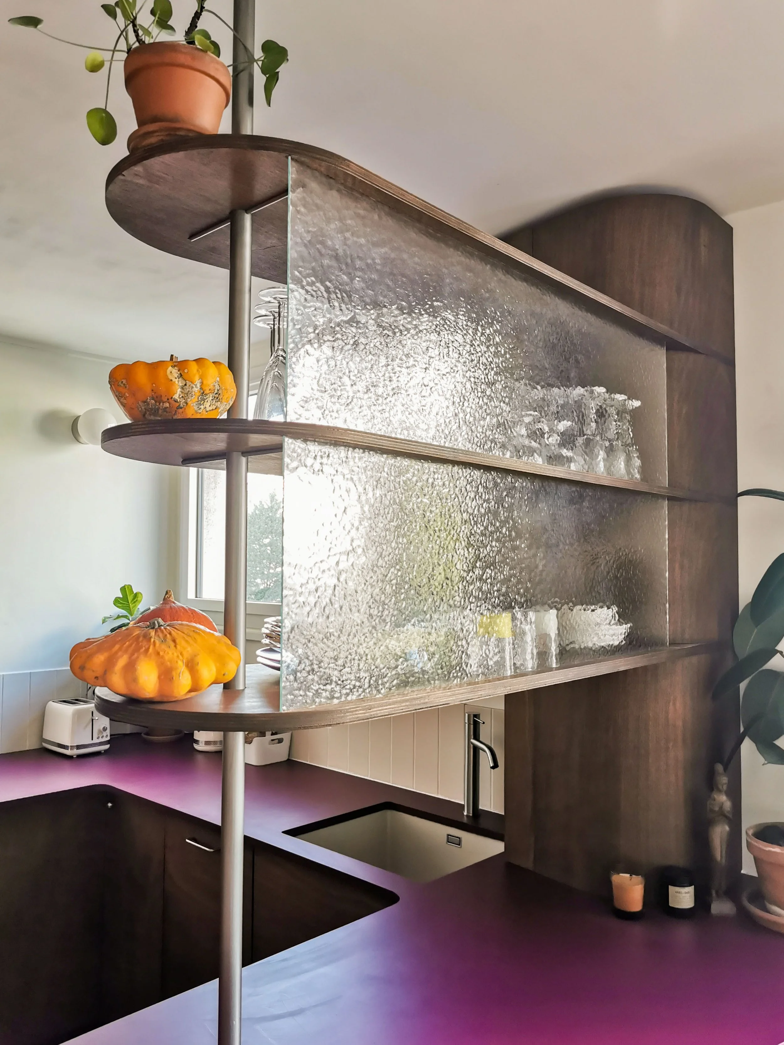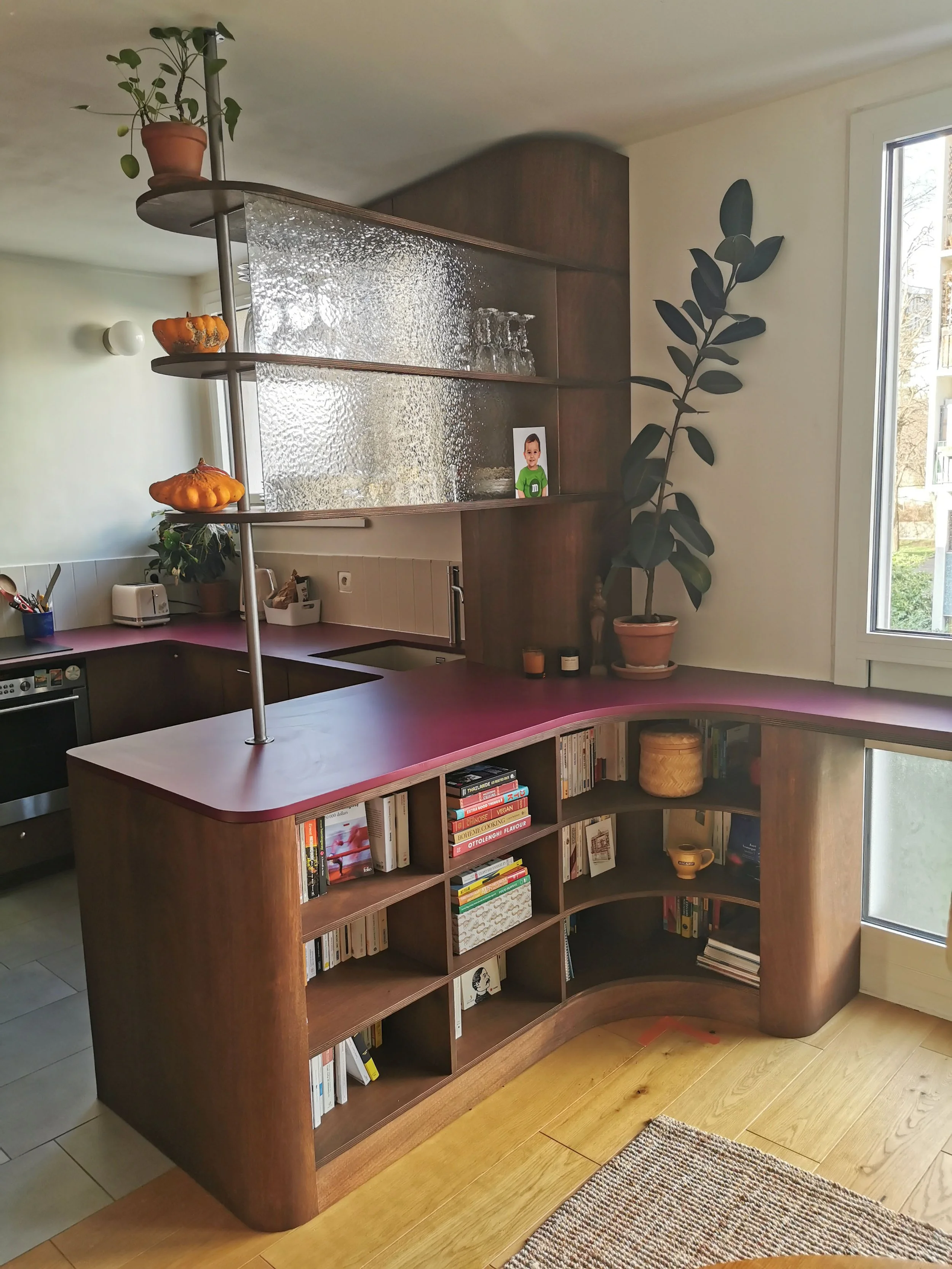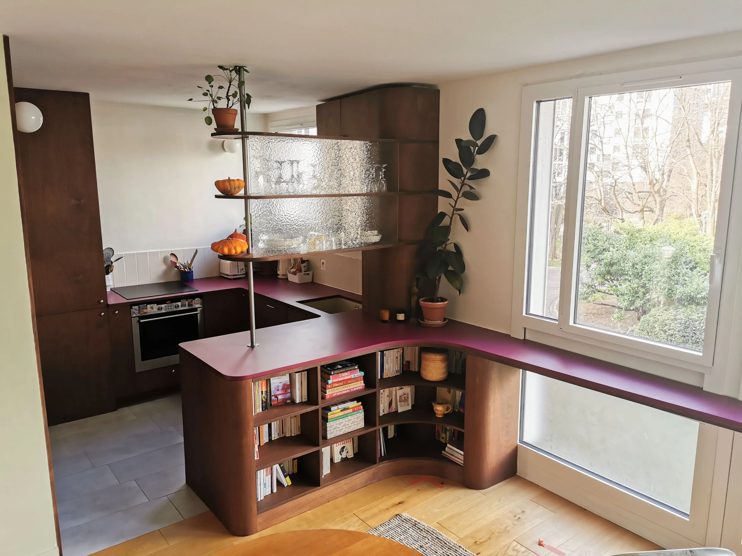 Dans un appartement du quartier de Ménilmontant à Paris, réalisation de différents agencements en collaboration avec QCA au dessin.